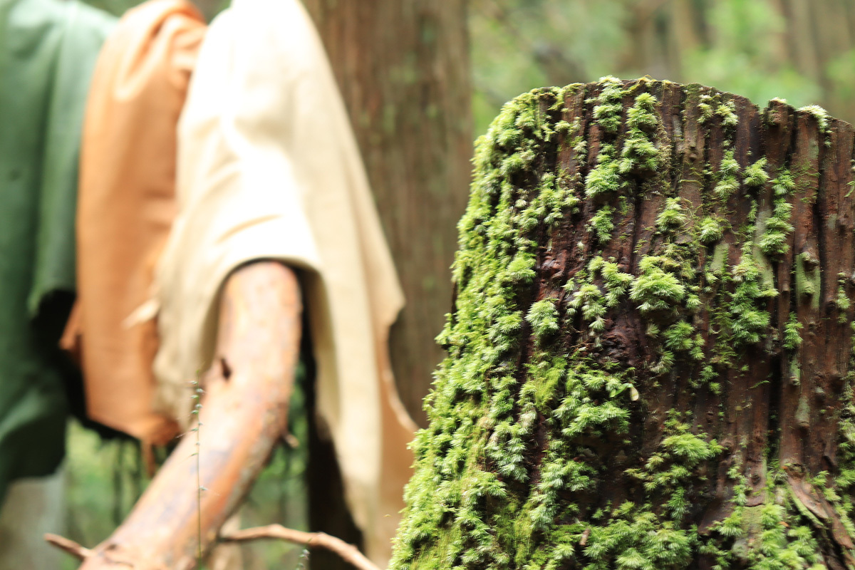 Dialogue with the hunter, repeatedly trial and error, not hurting the skin as much as possible, thanking the end of life, hands together, and deeply thanking the forest.